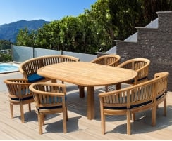 Deluxe Teak Banana Bench, Coffee Table & Armchairs, Furniture Set